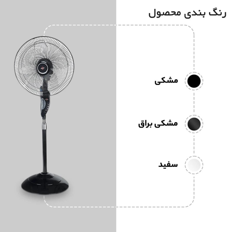 قابلیت تنظیم آسان زاویه وزش باد به صورت جغجغهای و قابلیت تنظیم گردش افقی هم در این مدل وجود دارد تا بتوانید کاملا متناسب با شرایط وزش باد کارکرد آن را تنظیم کنید. گارد محافظ میلهای و مشبک این محصول باعث میشود گردش پرسرعت پرهها موجب ایجاد مشکلی نشوند و ایمنی دستگاه حفظ شود. این پنکه برای فضاهای جمعوجور مانند اتاق خواب یا اتاق مطالعه گزینهی بسیار خوبی محسوب میشود.