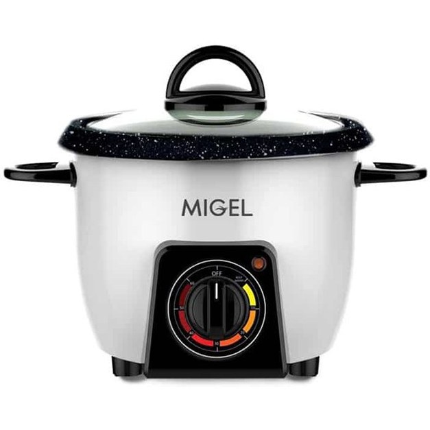 جنس بدنه این پلوپز میگل از فلز ساخته شده که با طراحی ساده و کاربردی دارای دو دستگیره در کناره ها و یک کنترل پنل آنالوگی می باشد.