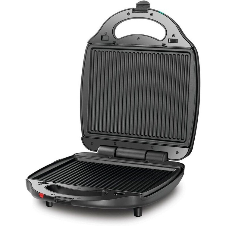 ساندویچساز TS4130 با توان 1400 وات عملکردی سریع و کارآمد دارد. سه نوع صفحه با پوشش نچسب دارد که میتوانید آنها را بسته به نیاز، بهراحتی جدا و تعویض کنید. صفحات گریل تا زاویهی 180 درجه باز میشوند تا فضای پخت بیشتری برای استیک، مرغ یا سبزیجات فراهم شود. سیستم قفل ایمنی دسته، چراغ نشانگر وضعیت و پوشش نچسب صفحات از ویژگیهای مهم این دستگاه هستند.
